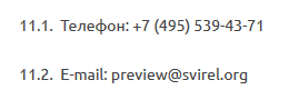 11. КОНТАКТНАЯ ИНФОРМАЦИЯ ОПЕРАТОРА